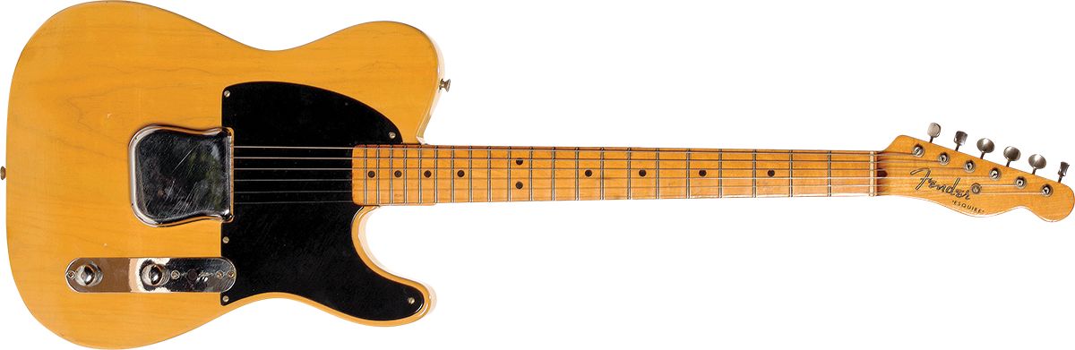 具有划时代意义的Fender Esquier,他是Fender Telecaster的最初形态。1950年Leo Fender设计了这把能够接电的吉他类乐器,总计生产了不超过50支。他的拾音器技术在当时仍不够成熟,常常会因过热伤到琴桥的拾音器。