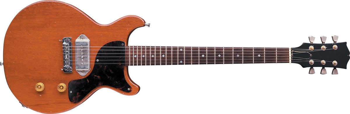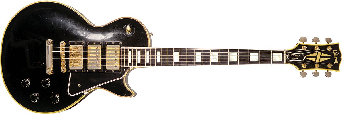 Gibson 初代版Les Paul,带有Les Paul本人最喜欢的黑色涂漆,三个双线圈拾音器的独特设计。金色镶边和金色琴头配件,矩形品记。在复刻款中,这个样式的Les Paul也非常受欢迎。