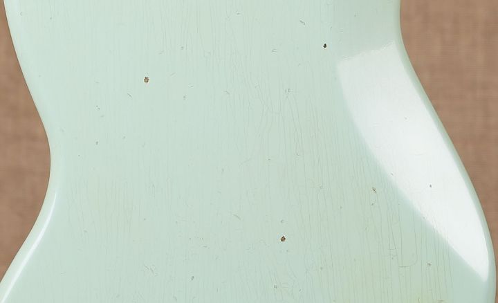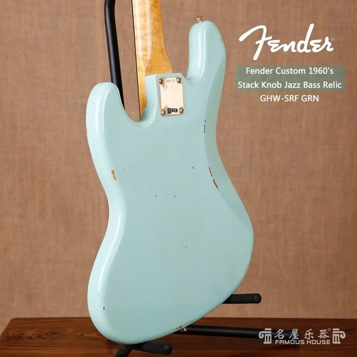 这把Bass是限量款的60s Jazz Bass他的漆面采用冲浪绿,和深色护板,Stack Knob的经典控制系统。
