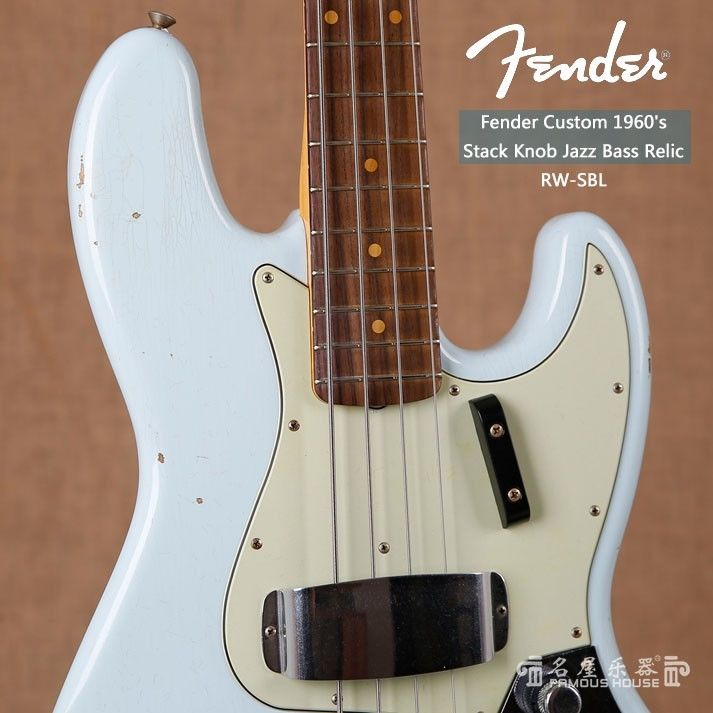 Fender Custom 1960's STACK KNOB Jazz Bass Relic RW-SBL的拾音器隐藏在护板下面
