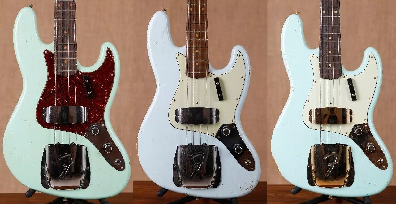 Fender Custom Shop的存在,让我们有幸能够体会到60年代的J-bass经典。今天介绍的三把Bass都是2017年Fender 复刻60s系列特别是他的Stack Knob经典旋钮的致敬系列。三把Bass采用了经典的颜色和不同的做旧处理,细细品味,也能感受到人们对那个年代音乐的尊崇。