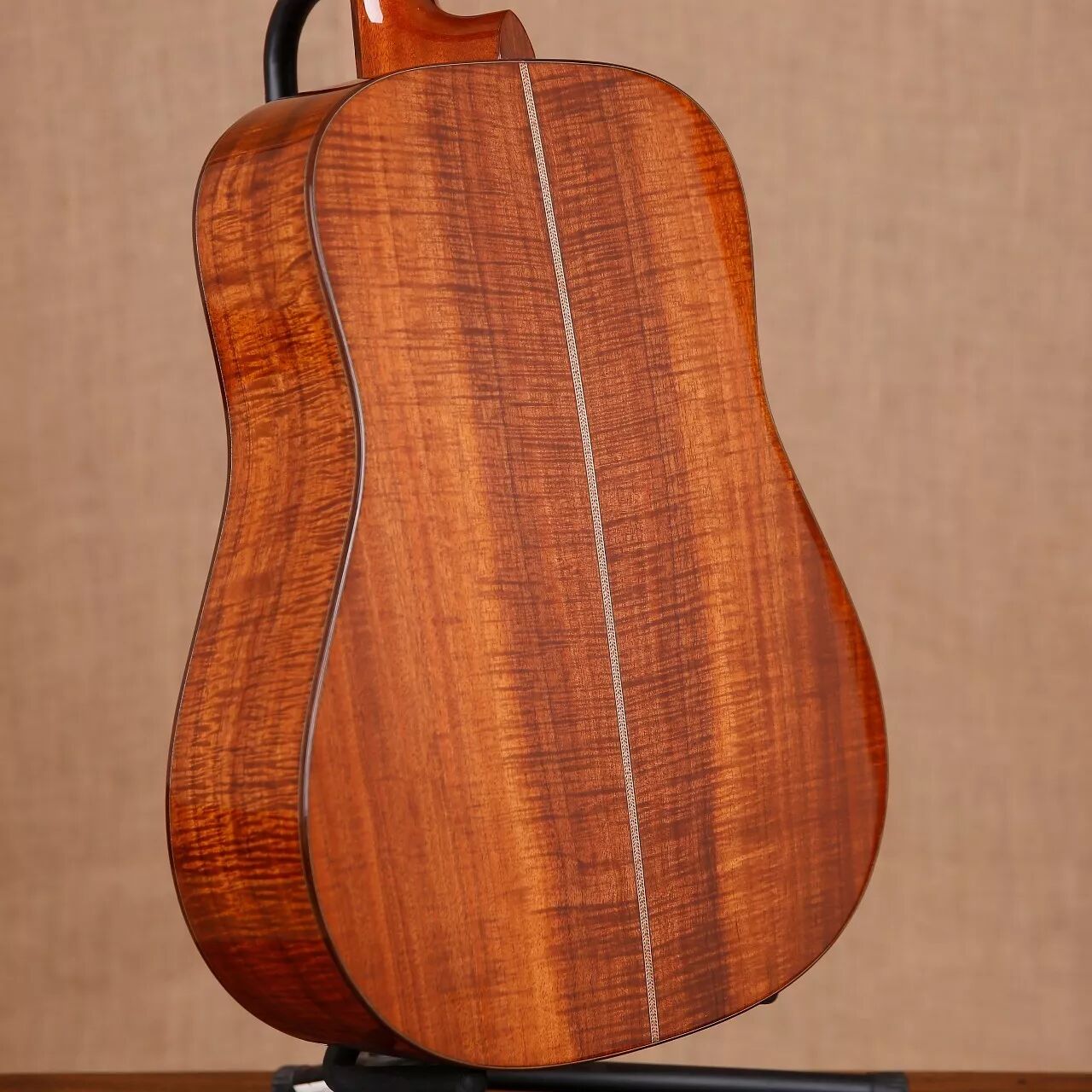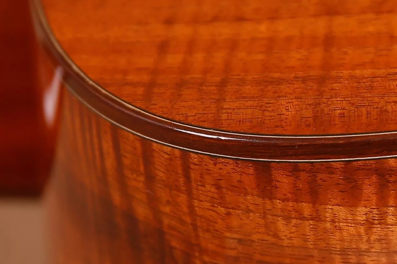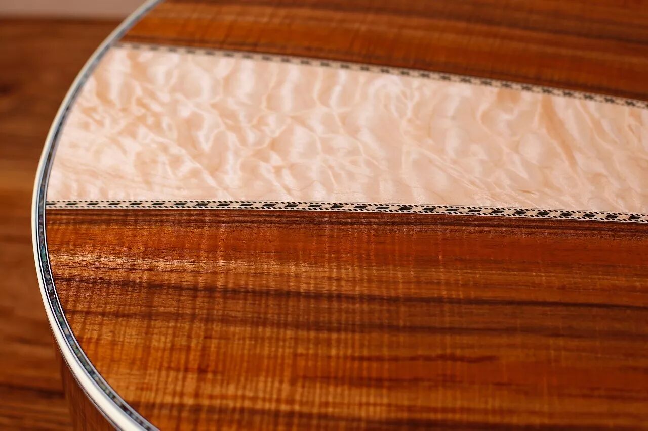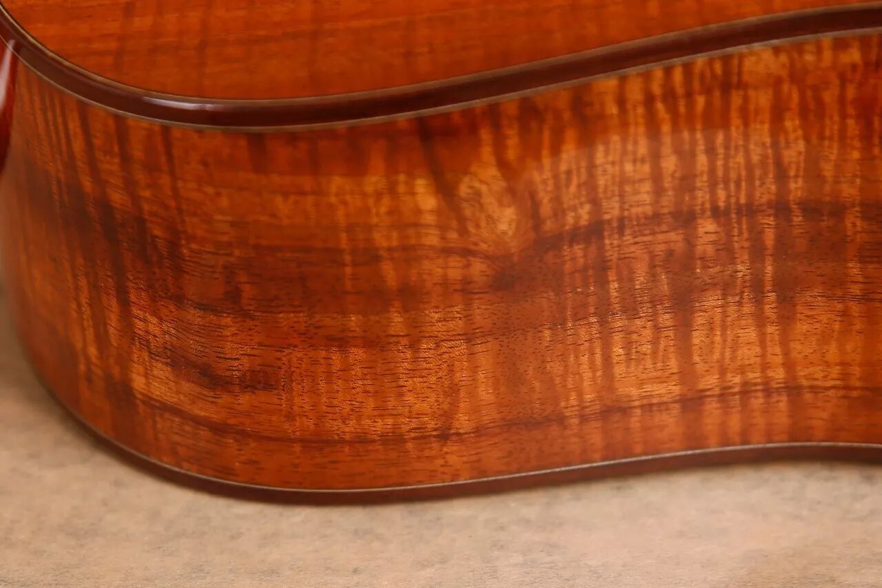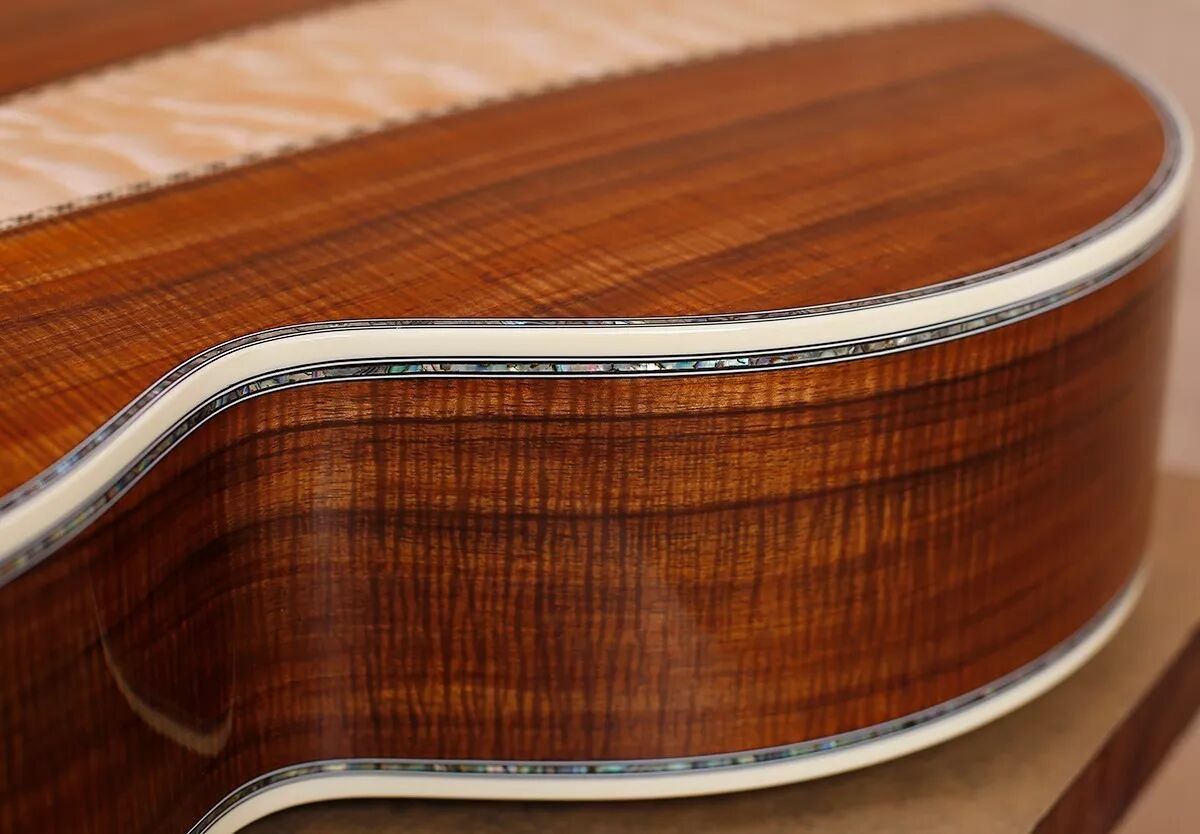 顶级的Hawaii Koa在另一个大厂Martin手里,也同样精彩绝伦。这支Martin Custom Shop 背侧板全部采用顶级夏威夷相思木。通过仔细的打磨,这把琴的漆面产生出亮丽的光彩,与华丽的木纹交相辉映。