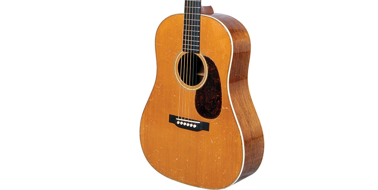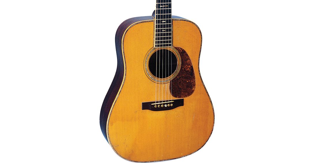 “最贵的Martin”是这把二战期间生产的D-45,实际上他已经代表了钢弦木吉他的最高工艺。在大萧条其间,能够买得起这样一把带有特殊品记,琴体用珍珠鲍贝壳镶边,巴西玫瑰木背侧的吉他的人实在是太少了,所以他的产量只有90把。其中收藏价值最高的是1938年生产的雪花指板镶嵌的几支(其余的都是六边形镶嵌)。