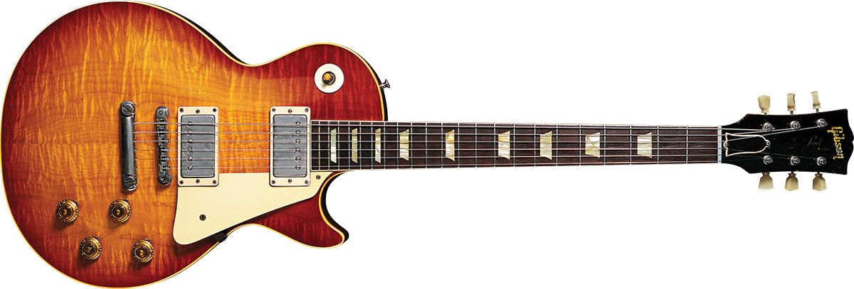 你没有看错,“Standard”才是最贵的Les Paul。事实上,“Standard”刚刚推出的时候并不受人欢迎,金色面板被换成了更冷肃的渐变色,并且加装了枫木贴面。由于销量欠佳,在1960年Les Paul被SG取代。在1958到1960年之间,“Gibson Les Paul Standard”生产了1700把。